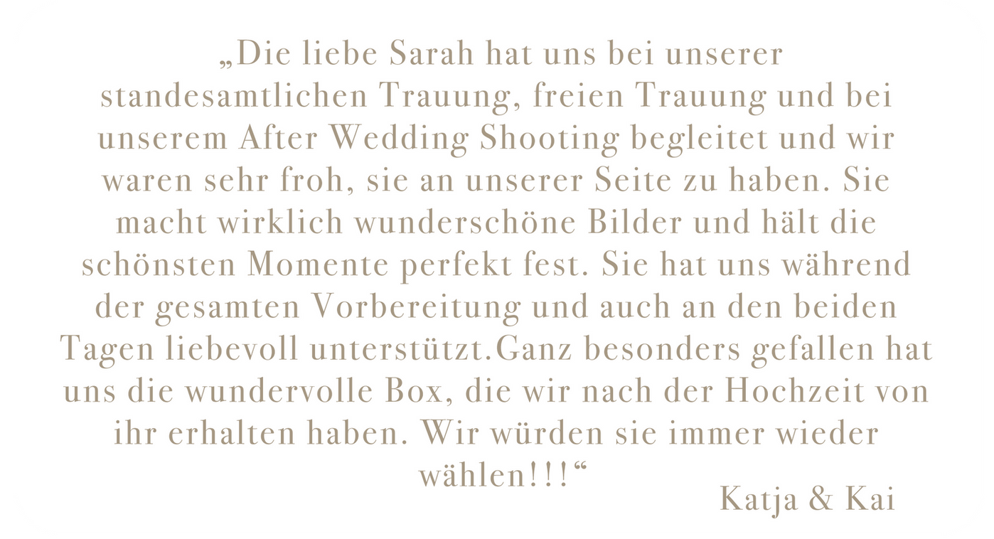 Ich bin Hochzeitsfotografin mit Leib und Seele und das Gesicht hinter Liebesbild by Sarah. Mir ist es wichtig die kleinen Momente zu genießen. Außerdem bin ich stolze Catmom und liebe den Geruch des Meeres über alles. Fremde Kulturen faszinieren mich und üben eine beinahe magische Anziehungskraft auf mich aus. Gute Freundschaften & andere Menschen glücklich zu machen bedeutet mir alles.